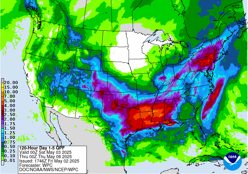 These charts from the Climate Prediction Center do show the northeast and mid Atlantic getting quite a bit of rain over the next 5 days. Those closer to where the cut off ends up setting up will see more rain than those to the north. But later Monday into Tuesday The cut off low is going to meander north and east heading towards the Great Lakes this will bring more widespread rain into northern parts of New York and northern to central new England. Then for Wednesday that cut off is going to meander a little bit to the east Away from the Great Lakes.